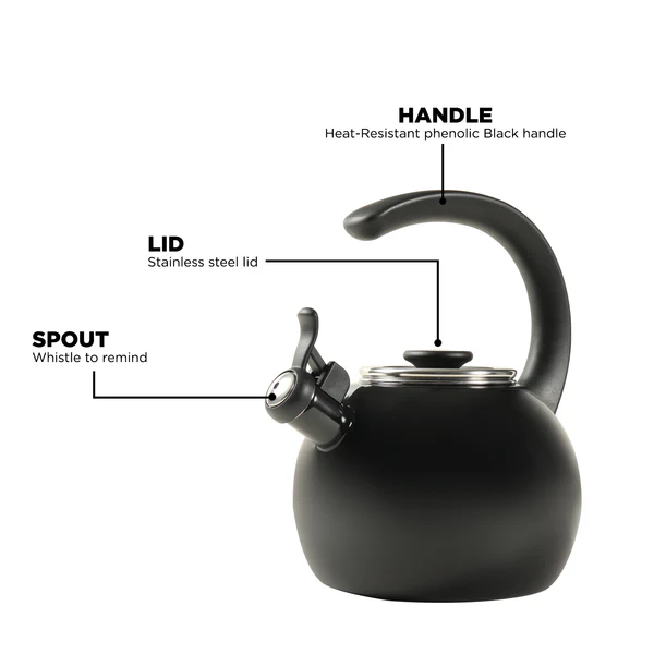 Circulon Enamel On Steel Whistling Tea Kettle 1.9 Liters, Black
