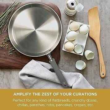 Built with an innovative triply design, the tawa features an aluminium core sandwiched between two layers of high-quality stainless steel. This construction ensures quick and uniform heat distribution, reduces cooking time, and helps save fuel. With no hotspots, the tawa provides consistent heating for perfectly cooked dishes that retain their texture, taste, and nutritional value.