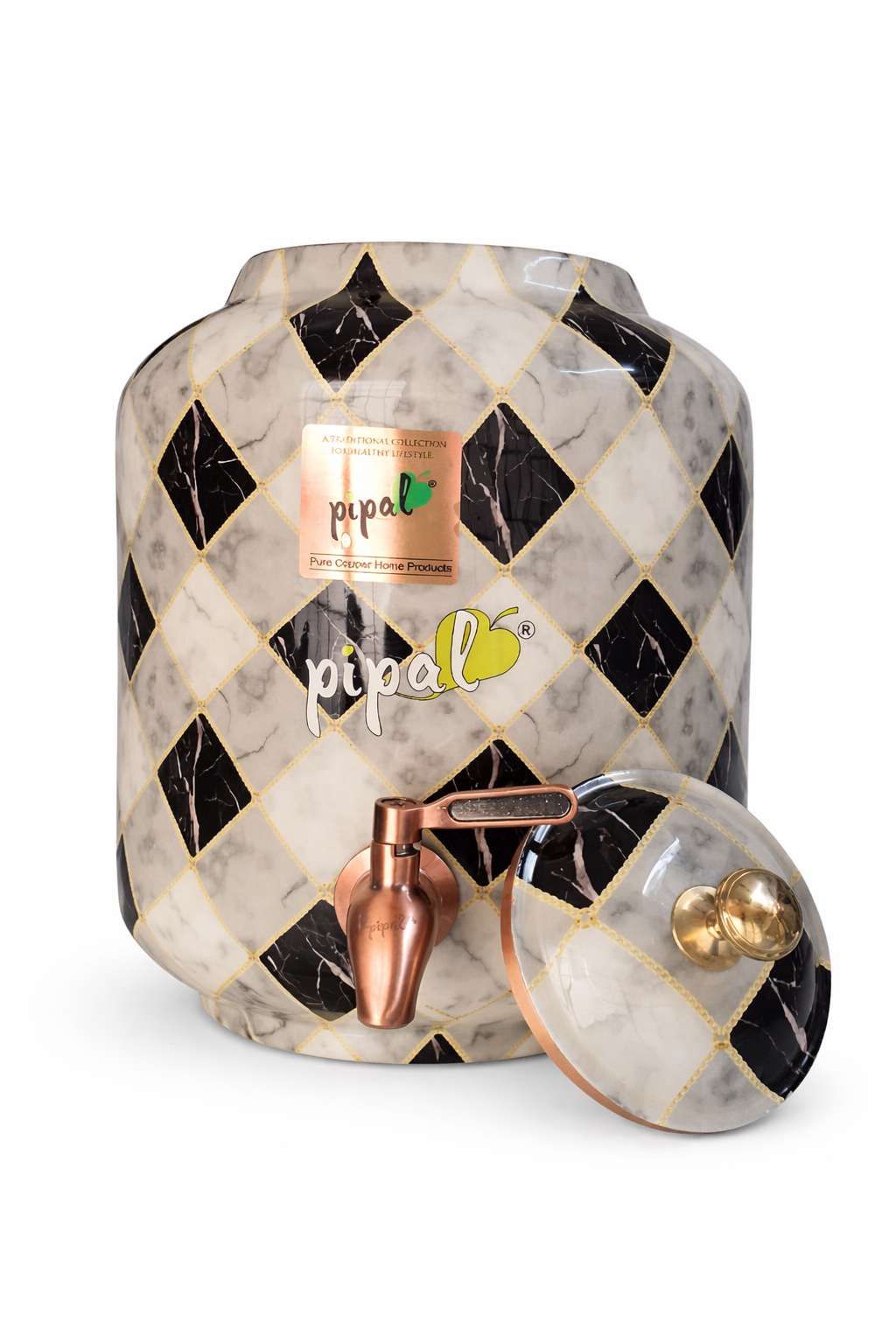 Pipal Premium Designer Water Matka – 8 Liter Black Graphite – Traditional Copper Water Pot