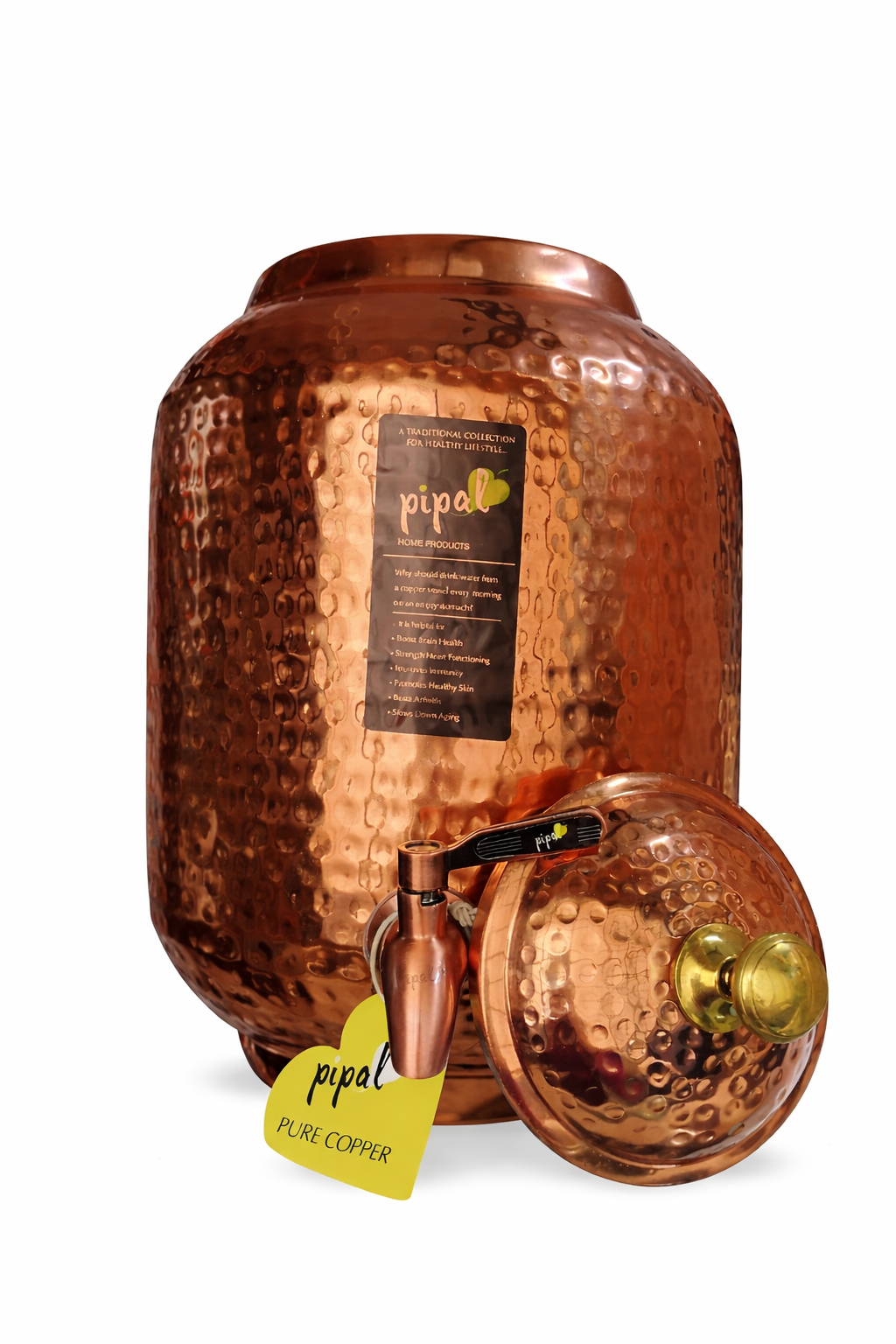 Bring home tradition, purity, and timeless elegance with the Pipal Copper Hammered Matka, expertly handcrafted from high-quality copper and finished with hammered design. Designed for both daily use and auspicious occasions, this matka is ideal for storing and serving water while adding a touch of heritage to your home or pooja space.