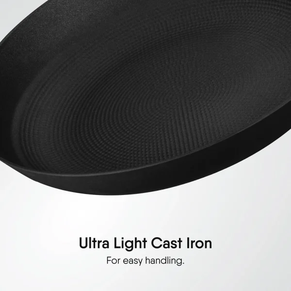 - Lightweight: Our cast iron fry pan weighs up to 50% less than traditional cast iron frypans, so you won’t have to strain your arm while cooking.