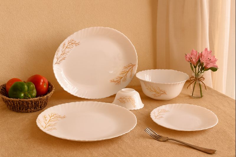Specially tempered opal glass provides greater impact and chip resistance, making the dinner set durable for everyday use.